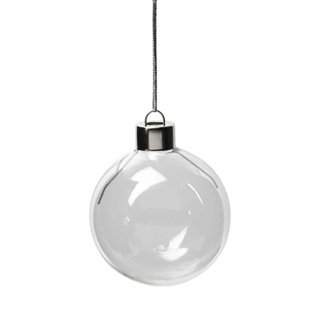 Kulene er laget av klart glass og kommer med avtagbart metalloppheng for enkelt å kunne fylle med for eksempel fjær, eller lim og glitter. Utsiden kan dekoreres lekkert med litt skiltvinyl.